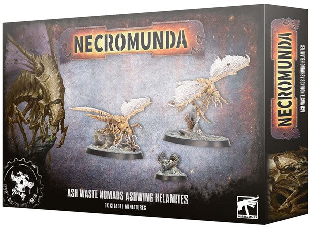 This multipart plastic kit builds two Ashwing Helamites, a pair of vicious, winged creatures, and a lure for your Ash Waste Nomads gangs in games of Necromunda. Their speed makes them ideal for ambushing unsuspecting enemy fighters, while the Ashwing Lure can be used to set up ambushes, or to create a no-go area for your opponent's gangers on the battlefield. Both of the Ashwing Helamites can be built on a scenic base, or mounted on a flying stand. There is also a head and Ashwing Lure with sky mantle backpack that can be used with a member of the Ash Waste Nomads War Party, available separately, to represent which member of your gang is responsible for these beasts.