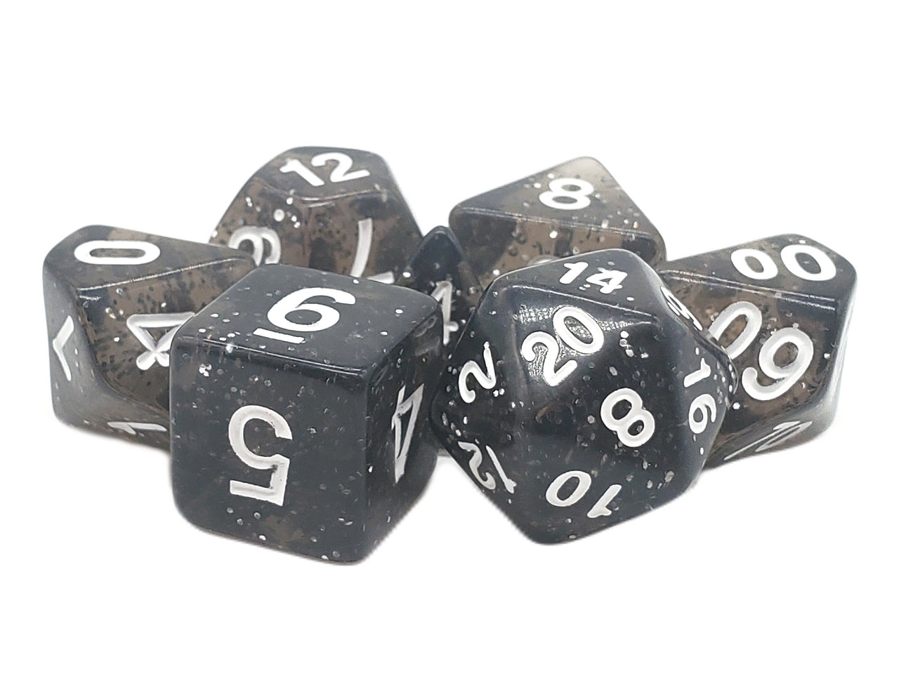 Old School 7 Piece DnD RPG Dice Set: Sparkle - Translucent Black