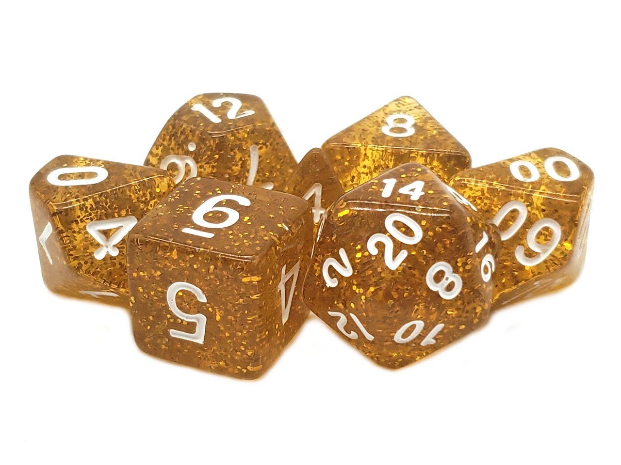 Old School 7 Piece DnD RPG Dice Set: Sparkle - Translucent Gold